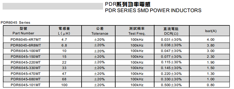 PDR8040-101MT功率電感