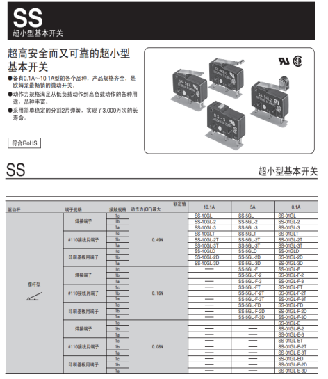 破壁料理機由主機、杯體以及配用附件組成。采用杯體和主機分離的設計方式。主機包括高速串激電機、傳動器件、安全開關組件、電機安裝支架、控制按鍵、外觀殼體、以及散熱系統組成。其中,安全開關組件設置有微動開關,通過杯體的觸動桿觸發微動開關使機器工作。主機沒有放置杯體的情況下產品不工作,起到了保護作用。杯體由傳動器件、刀座組、杯體、杯蓋、投料蓋以及密封件組成。此時提到的安全開關組件,為了讓消費使用更放心,則須大大的提高產品的安全性,建議選用元氣件龍頭品牌歐姆龍微動開關SS-5GL系列,超高安全而又可靠的超小型基本開關。相關產品信息如下。