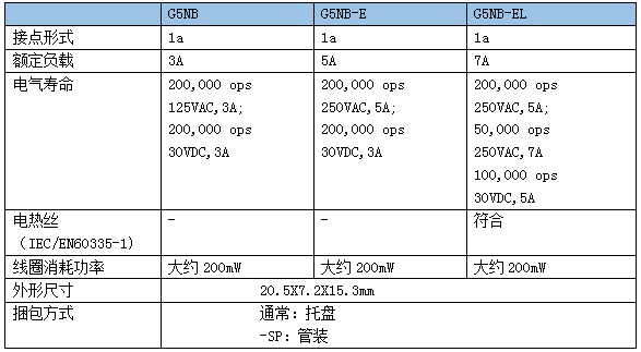 二、歐姆龍繼電器G5NB系列主要技術參數: