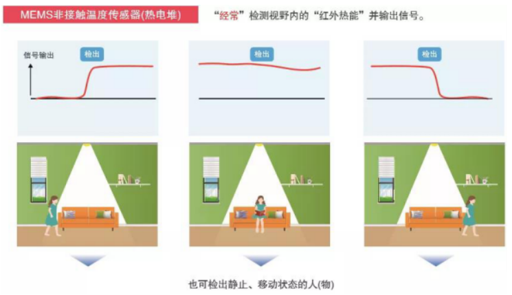 一、采用熱電堆元件,相較于傳統(tǒng)的焦電傳感器,可實(shí)現(xiàn)靜態(tài)人體測溫;