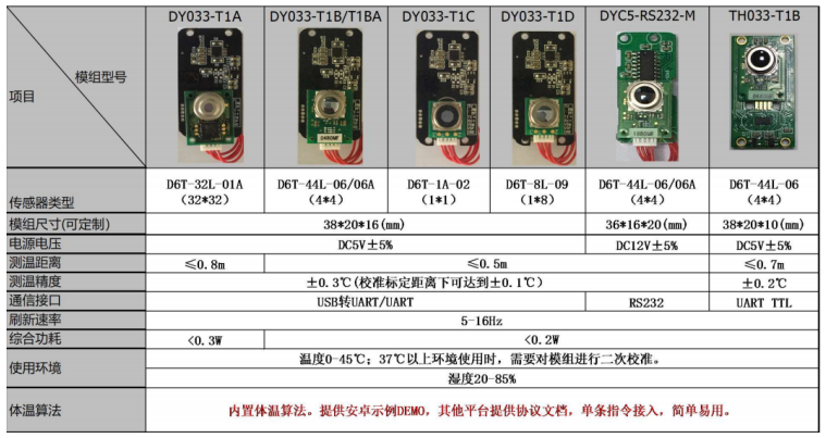 我們同時(shí)也可以給您提供一整套的測溫解決方案!實(shí)現(xiàn)購買即可使用,無需二次開發(fā)!我們可以根據(jù)客戶需求,搭載1*1,1*8, 4*4, 32*32歐姆龍測溫傳感器,實(shí)現(xiàn)檢測距離0.5-0.8米測溫,測溫精度可以達(dá)到±0.2℃(校準(zhǔn)標(biāo)定距離下可達(dá)到±0.1℃)。也可以滿足客戶的多種串口通訊方式(1)USB轉(zhuǎn)UART/UART;(2) RS232 ;(3) UART TTL。模塊資料如下: