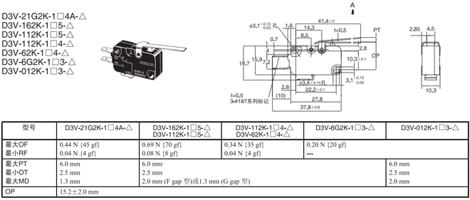 | 短擺桿型 | 內(nèi)部安裝 | 1.23N {125gf} | D3V-21G1-1□4A-△ | D3V-21G1-2□4A-△ | D3V-21G1-3□4A-△ |