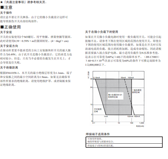 | 注:1.次數(shù)值為標(biāo)準規(guī)格的節(jié)點間隔1mm(F ?Gap)的電流常熟,節(jié)點間隔為0.5mm(G Gap)的場合,定格多少有所不同,請充分注意。 |