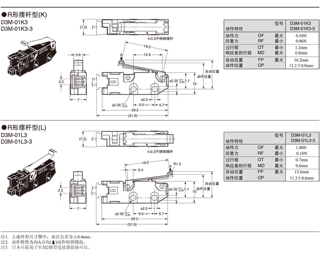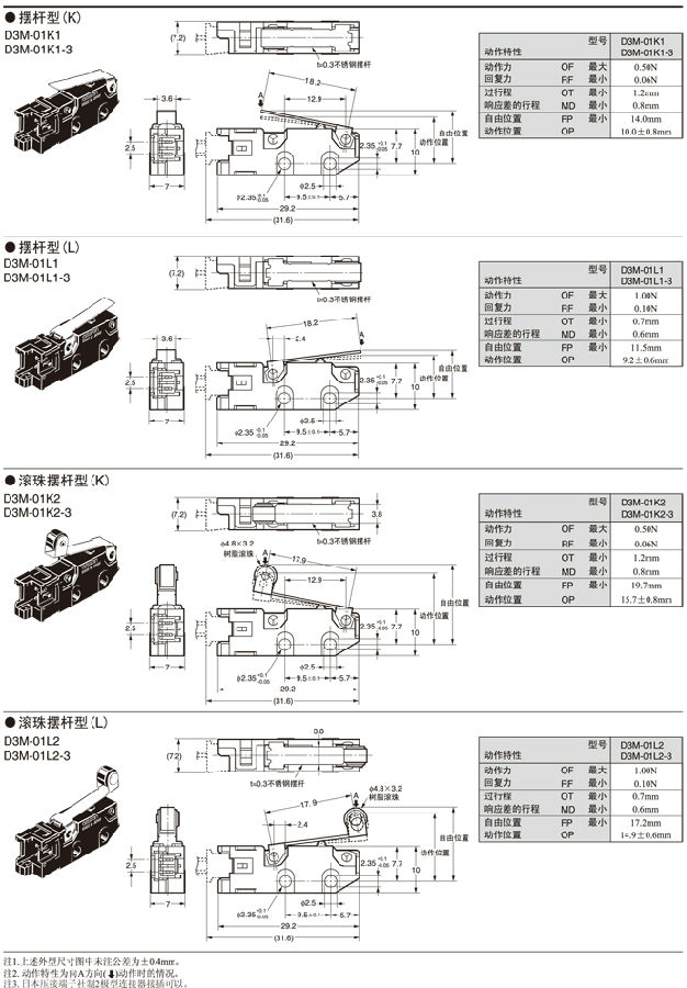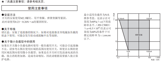 在針狀按鈕型中為了自由位置和總行程位置的數(shù)據(jù),在擺桿型中為總行程位置的數(shù)據(jù)。 接點的閉路或開路在1ms以內(nèi)。 |