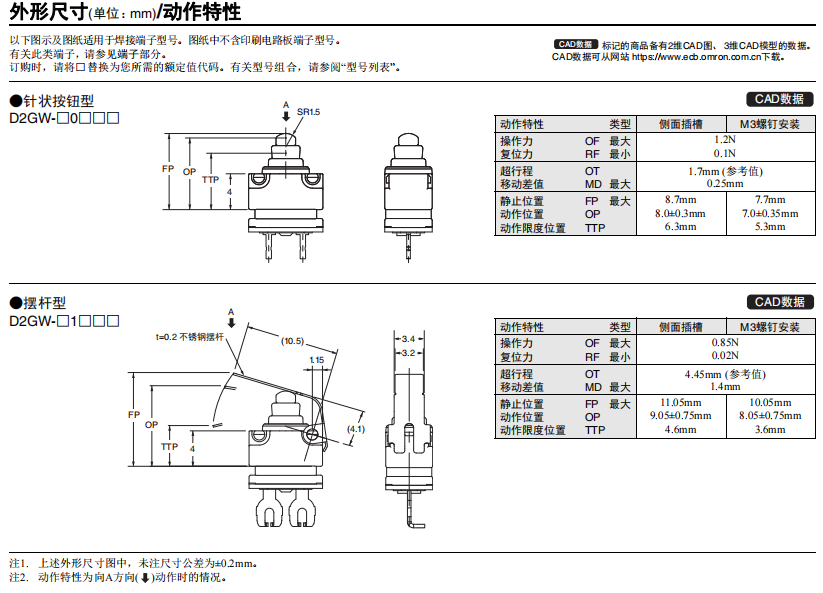 D2SW 密封型超小型基本歐姆龍開關