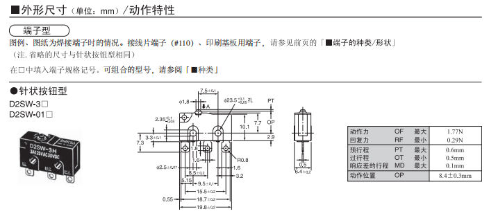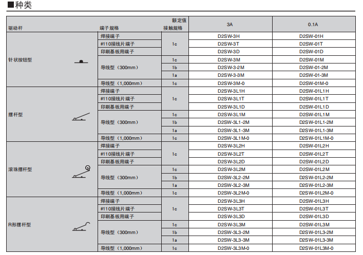 D2SW 密封型超小型基本歐姆龍開關