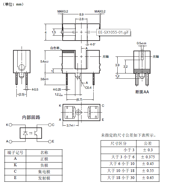 EE-SX1055 微型光電傳感器[透過型]